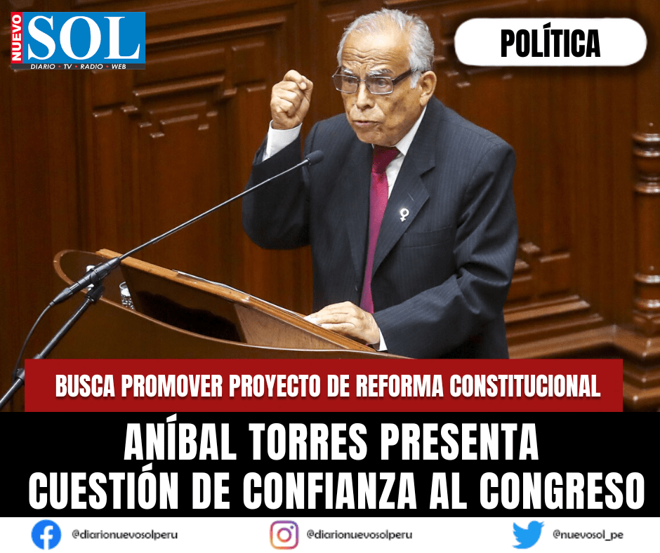 El presidente del Consejo de Ministros, Aníbal Torres, anunció la presentación de una cuestión de confianza al Congreso con el fin de que la representación nacional atienda en el más breve plazo posible las iniciativas del Ejecutivo que buscan regular la relación entre los poderes del Estado. En una misiva enviada a José Williams, el premier anunció su pronta visita al Pleno para exponer los proyectos de ley en cuestión.