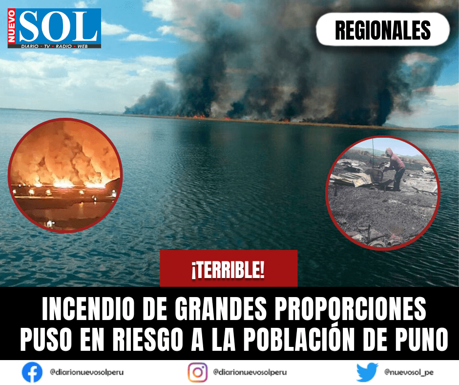 Un incendio de grandes proporciones tuvo lugar en la isla flotantes de los Uros ubicada en el Lago Titicaca, Puno.