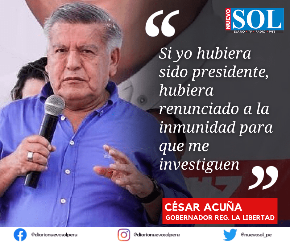 Respaldando la decisión de la Subcomisión de Acusaciones Constitucionales del Congreso, tras la aprobación del informe final para inhabilitar al presidente Pedro Castillo por el delito de traición a la patria, el gobernador regional electo de La Libertad, César Acuña, aseguró que Alianza para el Progreso (APP) los apoyará.
