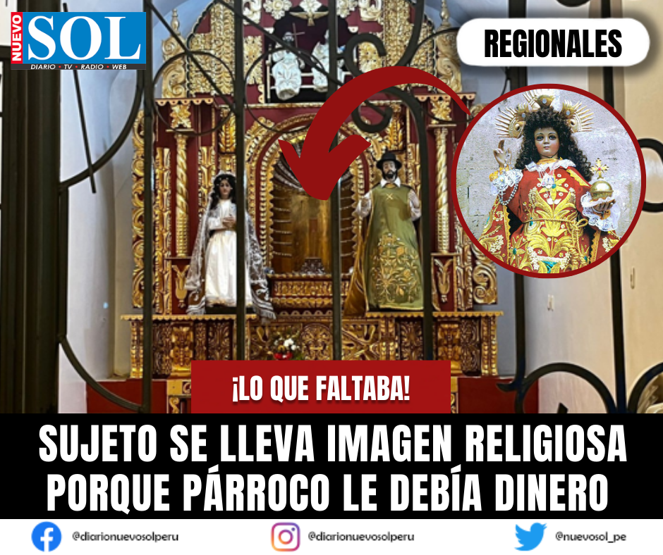 Viendo que los meses pasaban y no obtenía respuesta sobre el pago de una deuda pendiente, Simón Lazo (52), no tuvo mejor idea que llevarse la sagrada imagen del ‘Niño Jesús de Reyes’, de la parroquia de San Jerónimo, en la ciudad de Andahuaylas, región Apurímac, con el fin de que el cura le pague una deuda pendiente a su hija, una docente que trabajó en el colegio particular de la iglesia.