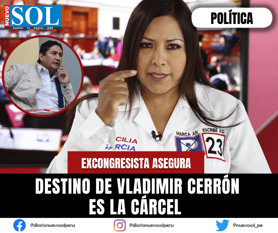 Cecilia García, señaló que el exgobernador regional de Junín, Vladimir Cerrón, “tiene un paso adentro de la cárcel”. Esto luego que el Ministerio Público solicitara 36 meses de prisión preventiva en su contra, en el marco del caso de financiamiento al partido Perú Libre.