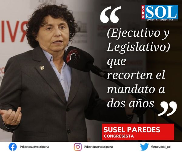 Volvió a mostrarse a favor del recorte por dos años del mandato presidencial y congresal. La congresista Susel Paredes dijo que de esta forma se revertirá el fatal panorama del país y de esos poderes del Estado.