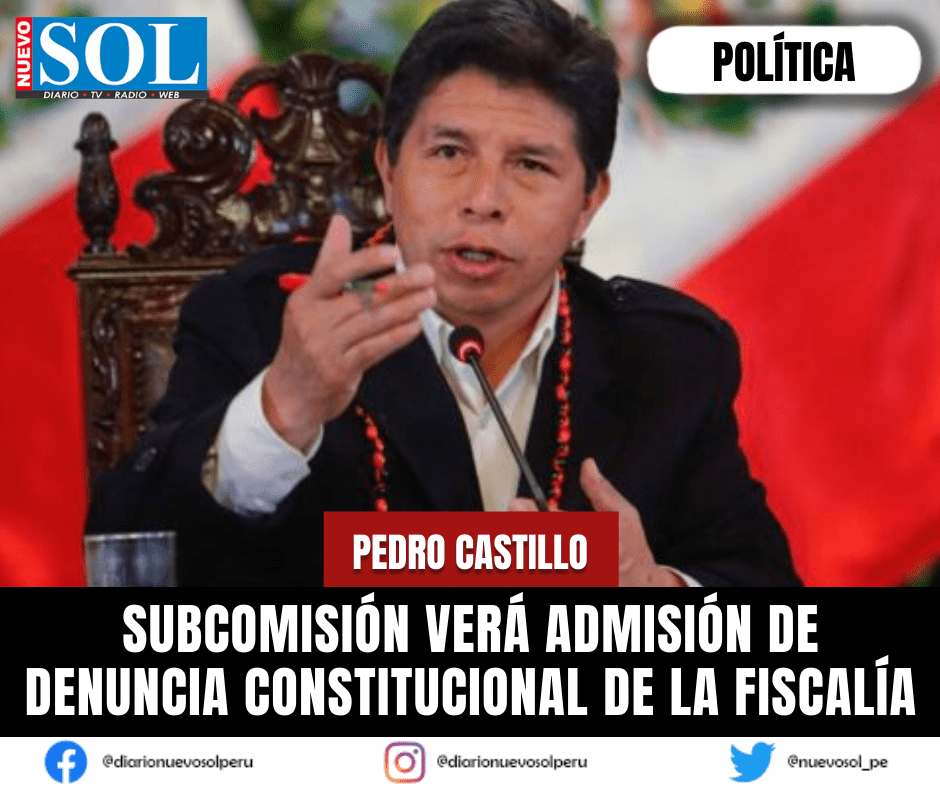 Esta tarde, la Subcomisión de Acusaciones Constitucionales del Congreso evaluará el informe que recomienda admitir a trámite la denuncia constitucional que presentó la fiscal de la Nación, Patricia Benavides, contra el presidente Pedro Castillo y otros altos funcionarios, en calidad de cómplices.