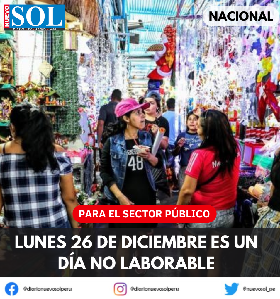 El Decreto Supremo 033-2022-PCM, publicado en el Diario Oficial El Peruano, señala que el próximo lunes 26 de diciembre será día no laborable para los trabajadores del sector público.