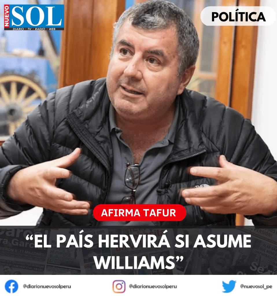 Si cae Dina Boluarte y la presidencia la asume José Williams, titular del Congreso, se desatará un conflicto social de magnitud como la que sufrió Chile o Colombia, advirtió el analista político Juan Tafur.