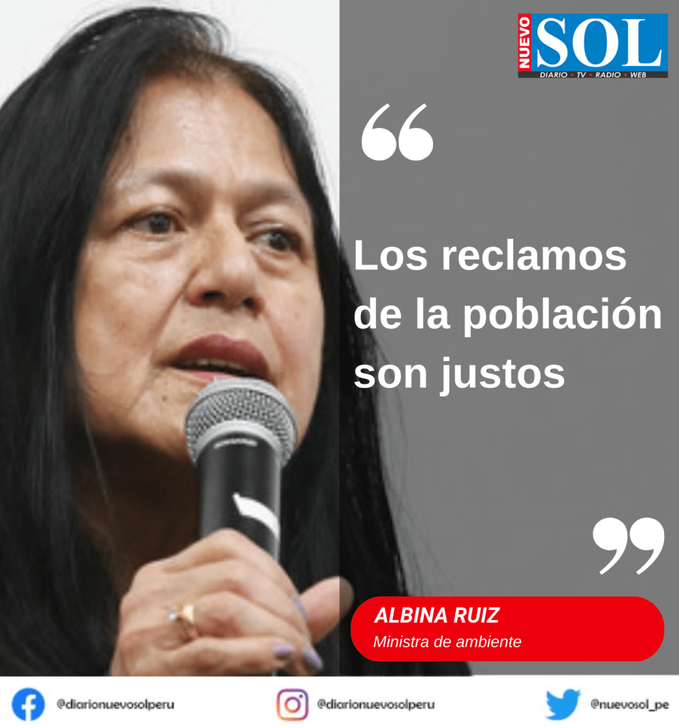 “Sí, los reclamos de la población expresados en las protestas son justos, pero deben ser atendidos a través de diálogo”, afirmó la ministra del Ambiente Albina Ruiz.
