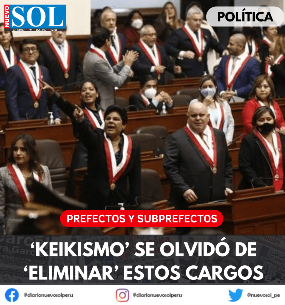 En agosto de este año, cuando el presidente era Pedro Castillo, la bancada de Fuerza Popular propuso, mediante un proyecto de ley, la eliminación de los cargos de prefectos regionales y subprefectos provinciales y distritales.