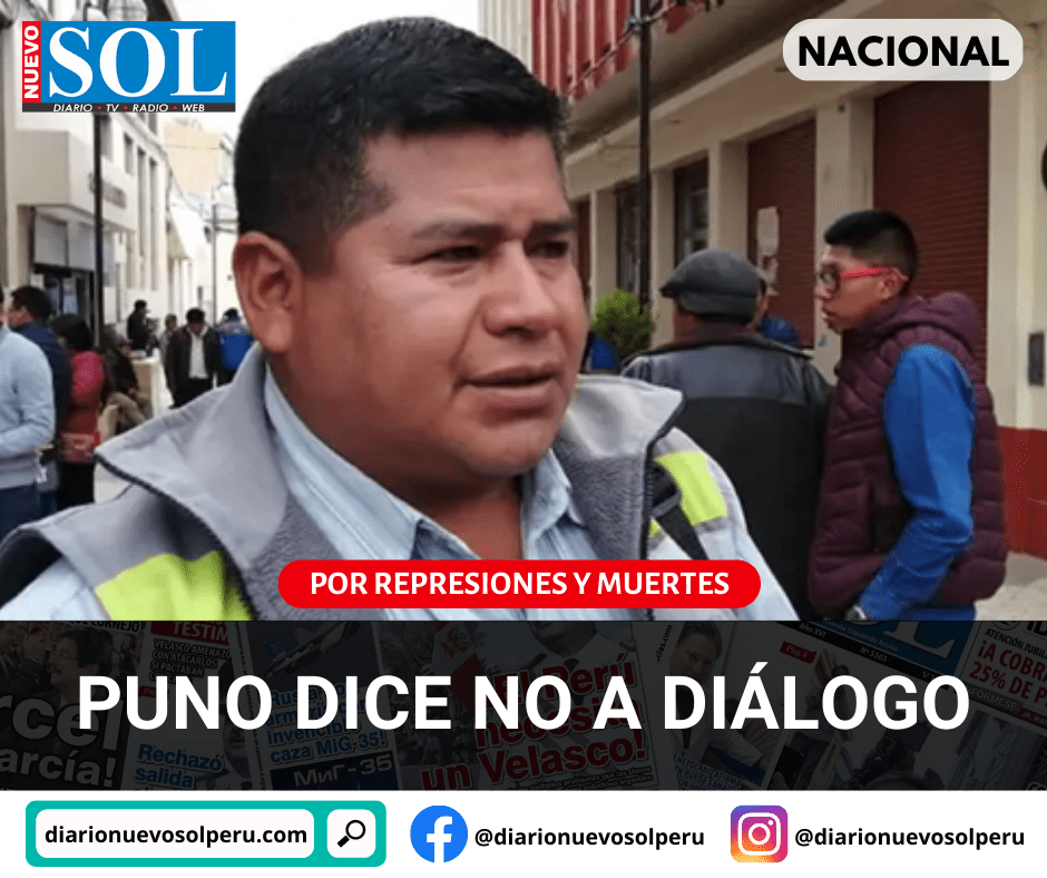 Los dirigentes gremiales de Puno no se reunirán con Dina Boluarte y sus ministros porque no se pueden dialogar con un gobierno represor, señaló el presidente del Frente de Organizaciones Populares (FOP), Amador Núñez Mamani.