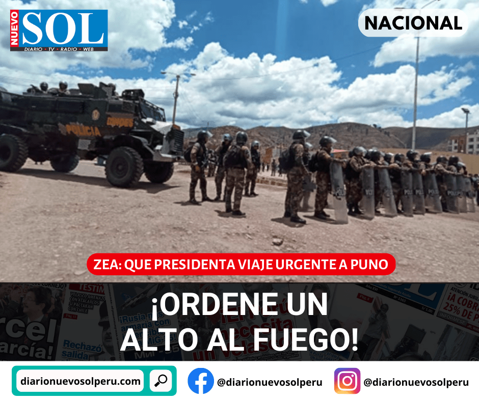 “Un cese al fuego a los mandos militares y policiales en Puno, y priorizar el diálogo con representantes y dirigentes ante esta situación de crisis», refirió.