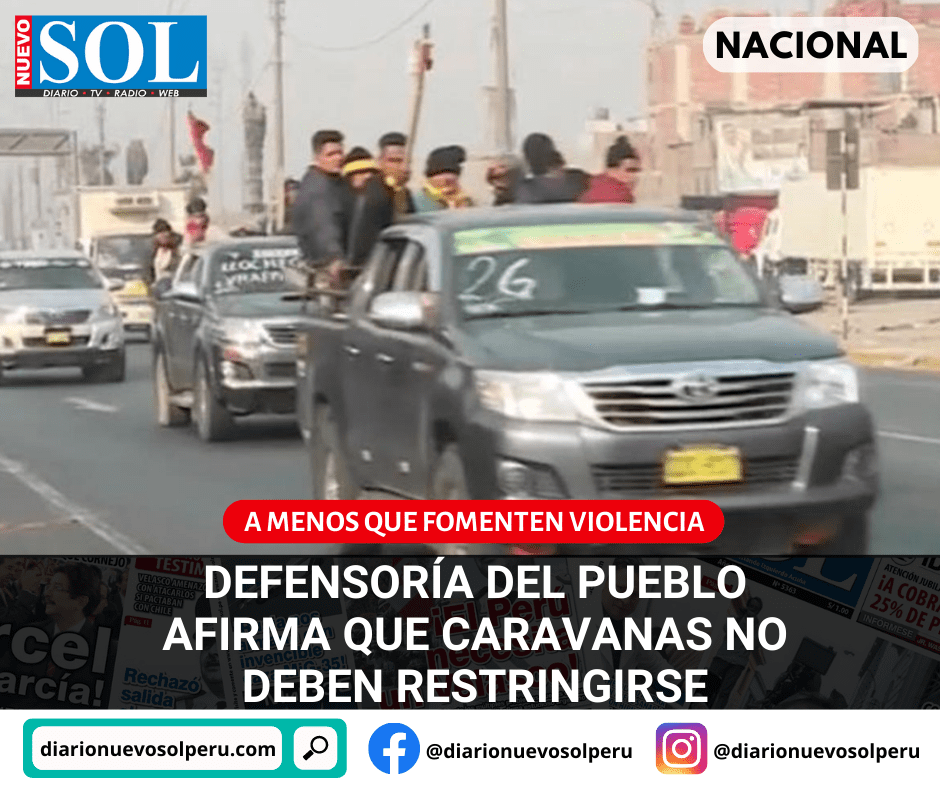 A menos que fomenten la violencia, la Defensoría del Pueblo, a través del jefe de la Oficina Defensorial de Lima, Alberto Huerta, manifestó que no se puede restringir el paso de una caravana que se dirige a realizar una protesta pacífica.