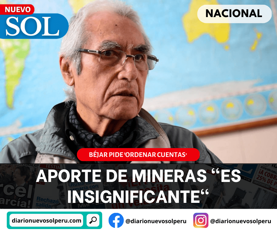 Desmintió el ‘gran aporte minero’. Los impuestos y regalías que paga la minería es casi insignificante, pues no representa ni el 5 % del presupuesto público, reveló el sociólogo Héctor Béjar.