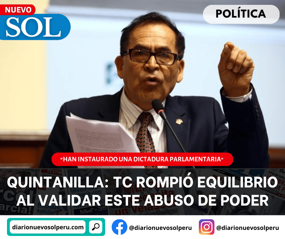 El Tribunal Constitucional (TC) ha validado que el Congreso tome decisiones sin ninguna observación “por lo se ha instaurado en el Perú la dictadura parlamentaria”, aseguró el analista político Alberto Quintanilla.