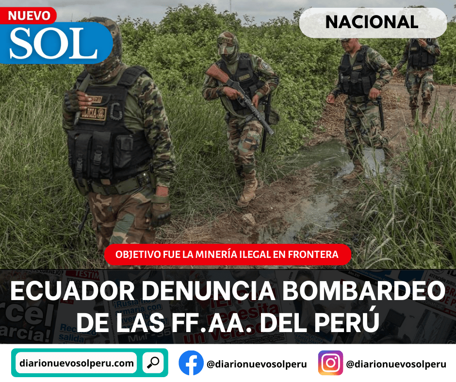 No solo la frontera sur es crítica. Medios ecuatorianos denunciaron que las Fuerzas Armadas del Perú bombardearon maquinaria de mineras ilegales de Ecuador en la frontera.