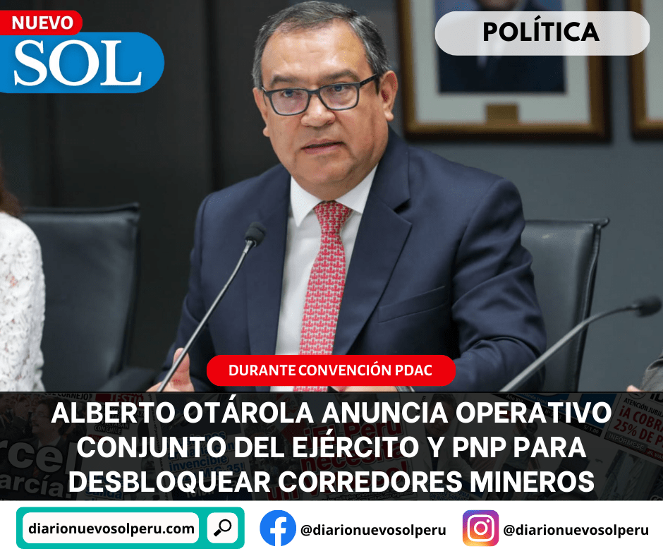 El también cuestionado premier Alberto Otárola, denunciado por la Fiscalía de la Nación de genocidio, afirmó que el Ejército y Policía Nacional realizarán operativos para desbloquear corredores mineros.