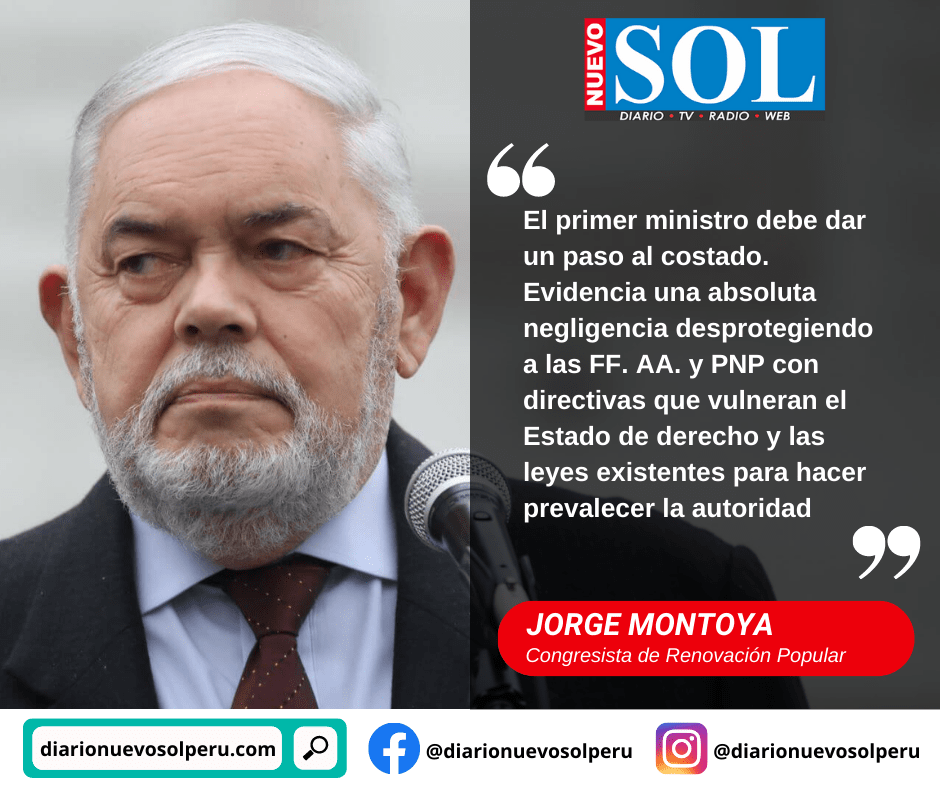 Por desproteger a las Fuerzas Armadas y a la Policía Nacional con “directivas que vulneran el estado de derecho y leyes existentes”, el cuestionado congresista (Renovación Popular), Jorge Montoya, demandó la inmediata salida de Alberto Otárola del cargo de presidente del Consejo de Ministros.