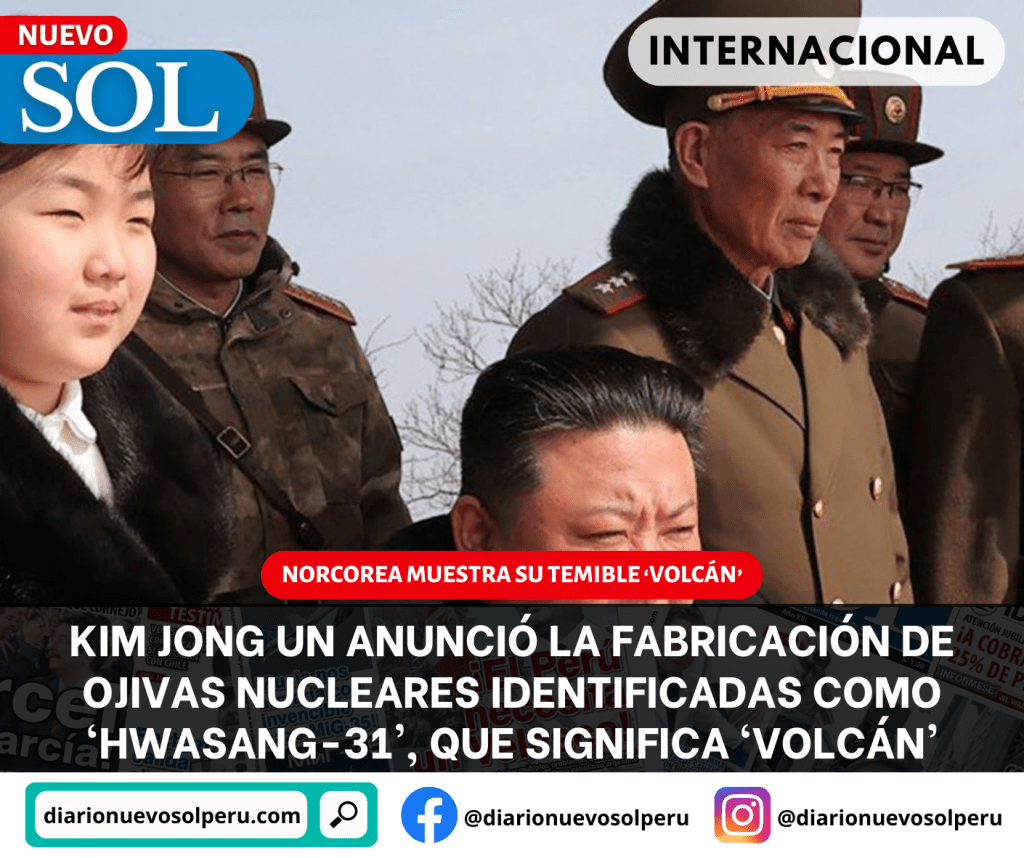 Mostró nuevo misil nuclear. El líder de Corea del Norte, Kim Jong Un, anunció la fabricación de nuevas ojivas nucleares identificadas como ‘Hwasang-31’, que significa ‘volcán’ en coreano.