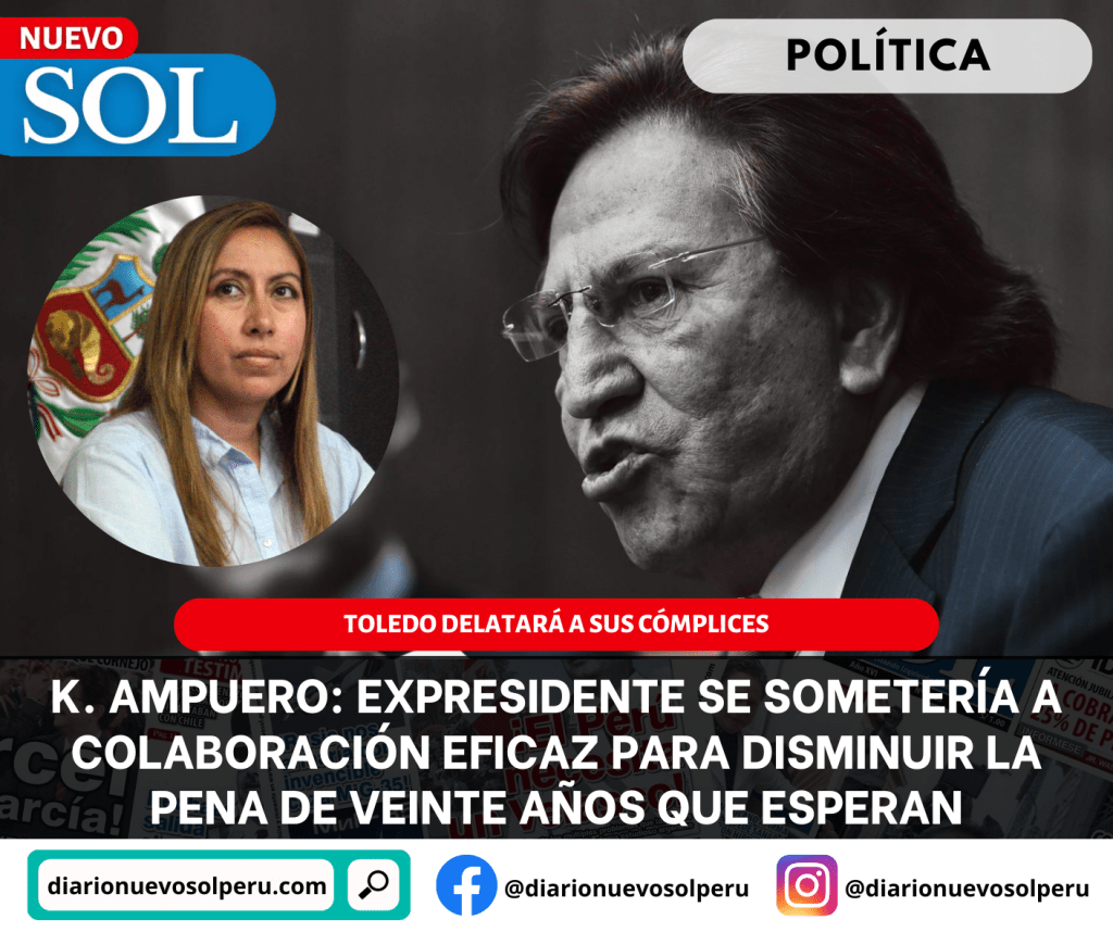El expresidente Alejandro Toledo se sometería a un proceso de colaboración eficaz a fin de delatar a sus cómplices y tratar de disminuir la pena de veinte años que le esperan en el Perú, sostuvo la exprocuradora del caso Lava Jato Katherine Ampuero.