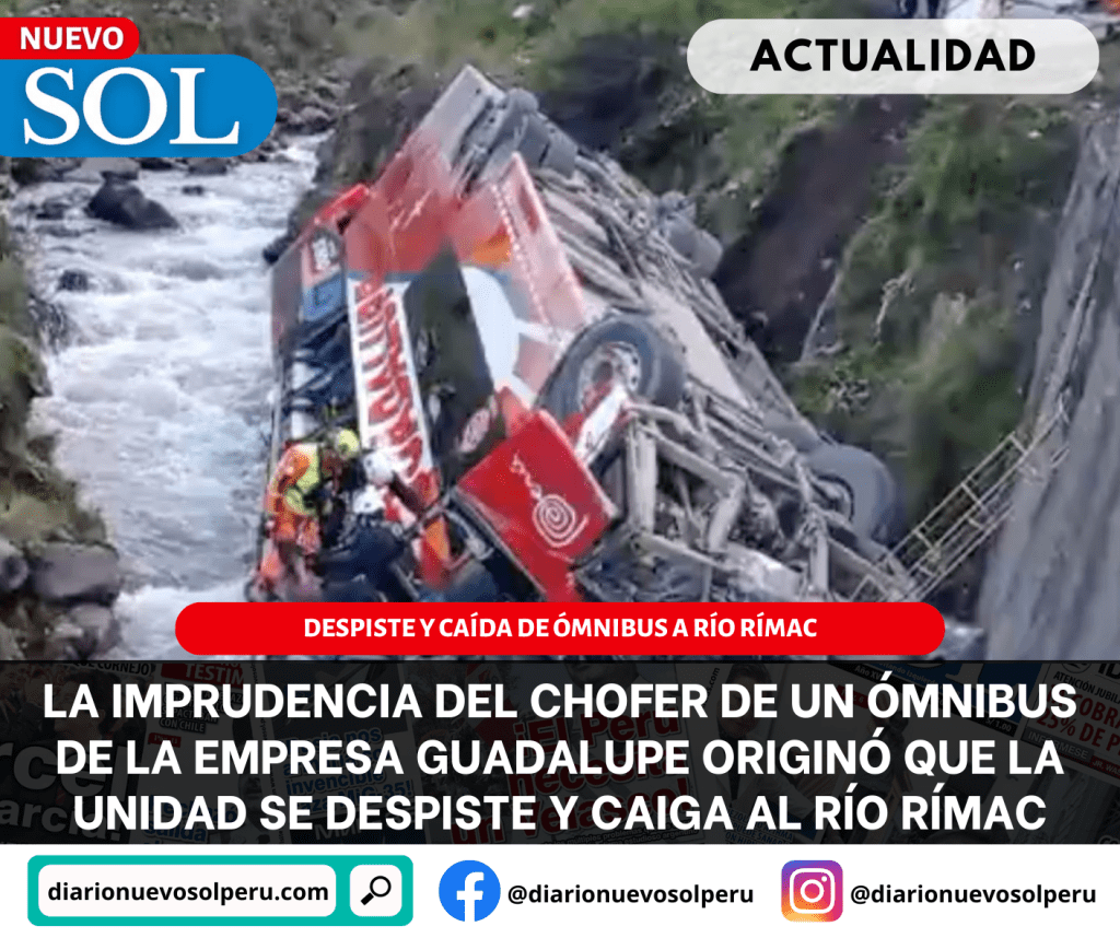 La imprudencia del chofer de un ómnibus de la empresa Guadalupe originó que la unidad se despiste y caiga al río Rímac.