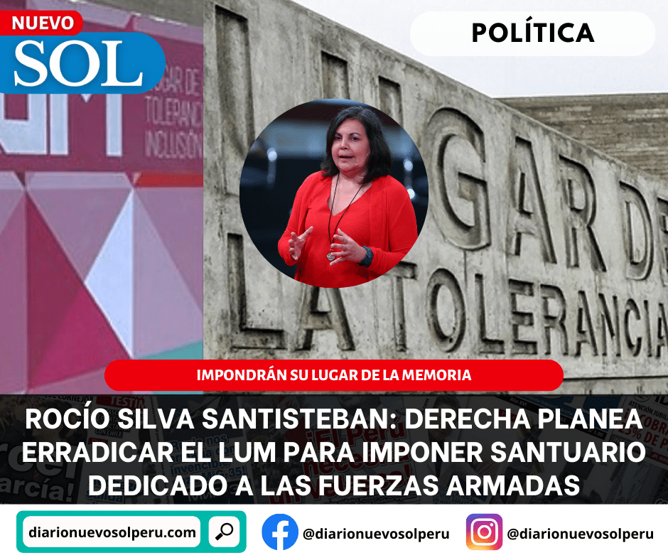 La derecha alista una ofensiva y planea erradicar el Lugar de la Memoria (LUM) para imponer en su lugar un santuario dedicado a las Fuerzas Armadas, advirtió la excongresista Rocío Silva Santisteban.