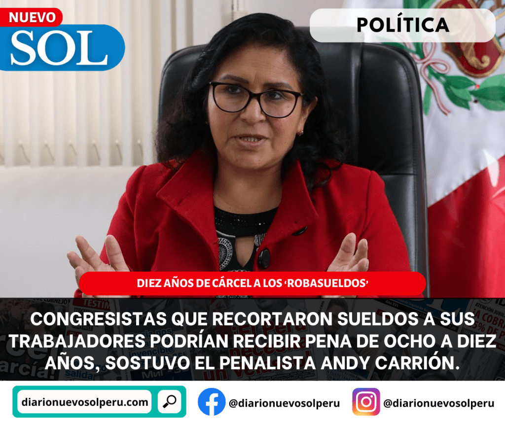 Los congresistas que recortaron sueldos a sus trabajadores podrían recibir una pena de ocho a diez años de prisión, sostuvo el penalista Andy Carrión.