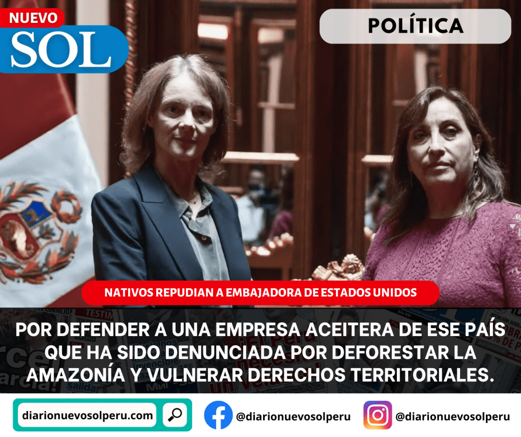 Organizaciones indígenas repudiaron a la embajadora de Estados Unidos en Perú, Lisa Kenna, por defender a una empresa aceitera de ese país que ha sido denunciada por deforestar la Amazonía y vulnerar sus derechos territoriales.