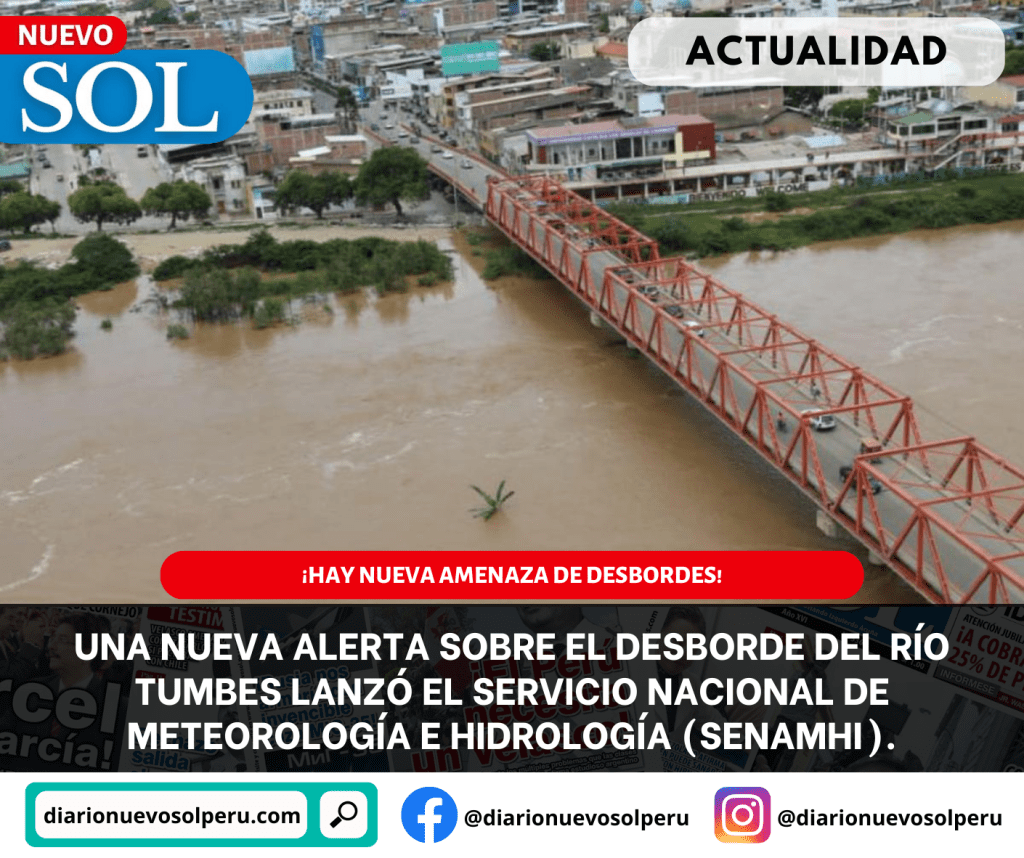 Una nueva alerta sobre el desborde del río Tumbes lanzó el Servicio Nacional de Meteorología e Hidrología (Senamhi).