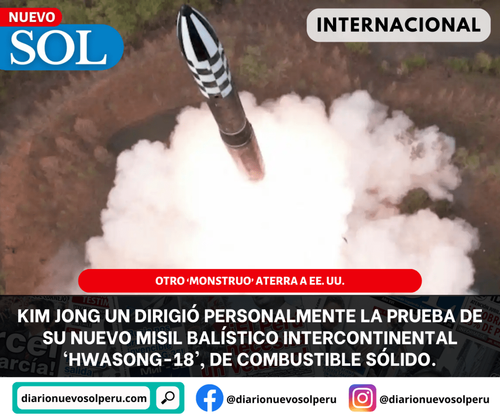 Mostró nueva arma que porta ojiva nuclear. El líder norcoreano, Kim Jong Un, dirigió personalmente el lanzamiento de prueba de su nuevo misil balístico intercontinental ‘Hwasong-18’, de combustible sólido.