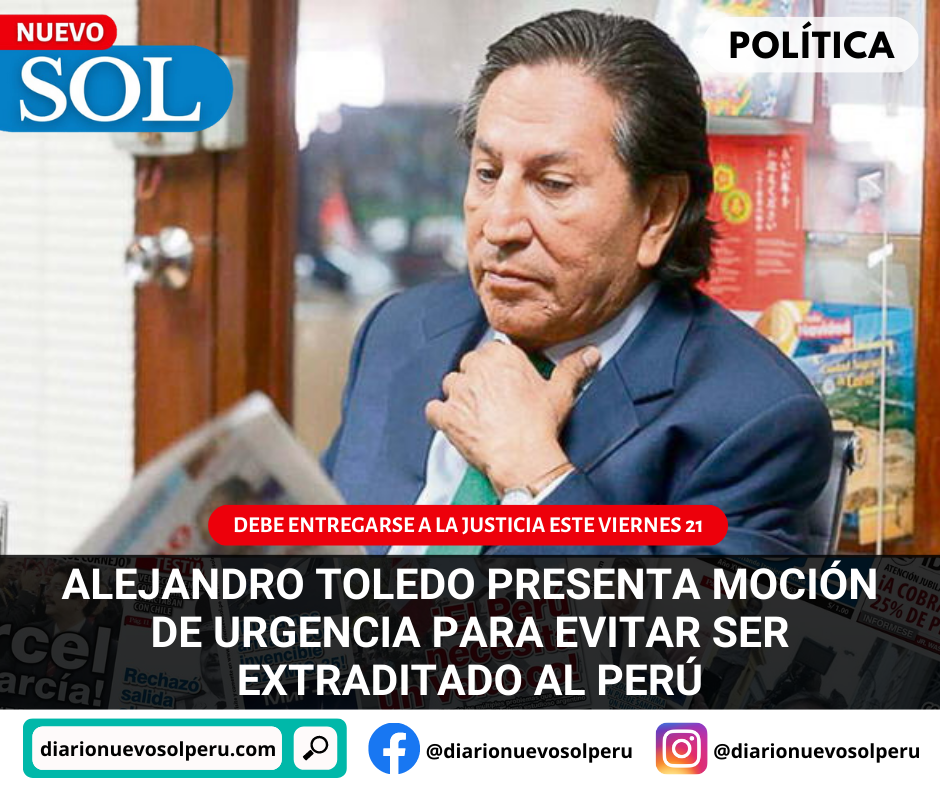 El prófugo de la justicia peruana, Alejandro Toledo, presentó ayer otro recurso para que Estados Unidos no lo ‘devuelva’ al Perú, y suspendan su extradición.