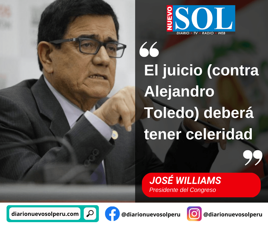 “Alejandro Toledo se encuentra bajo la justicia nacional, y pido que el juicio tenga la celeridad que corresponde”, afirmó el presidente del Congreso, José Williams Zapata.