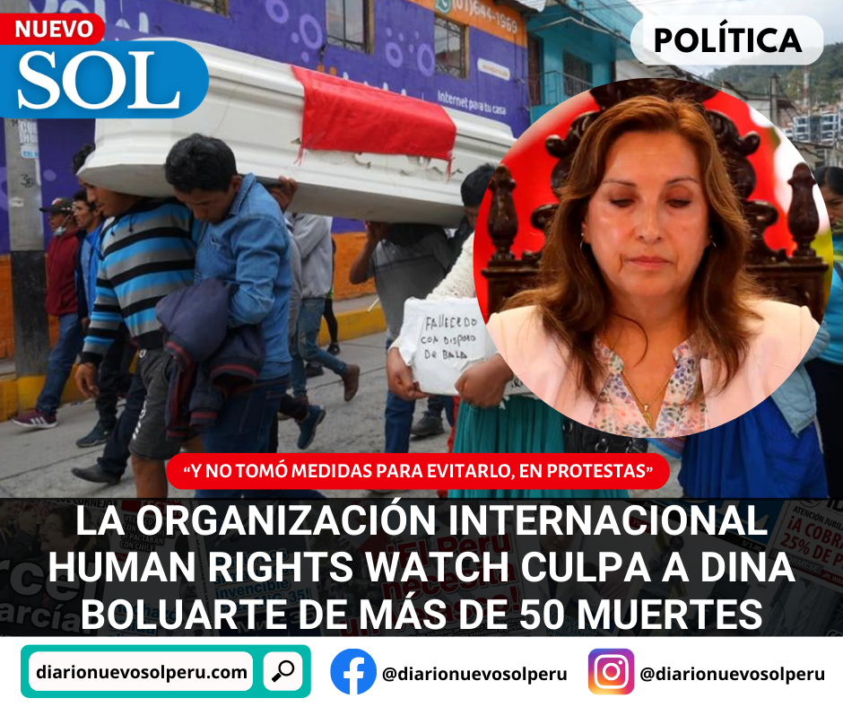 En un lapidario informe, titulado ‘Deterioro letal. Abusos por las fuerzas de seguridad y crisis democrática en el Perú’, de ciento diecisiete páginas, la culpan por las más de cincuenta muertes que hubo en las protestas ciudadanas contra su gobierno para que se realicen nuevas elecciones generales y se vayan todos.