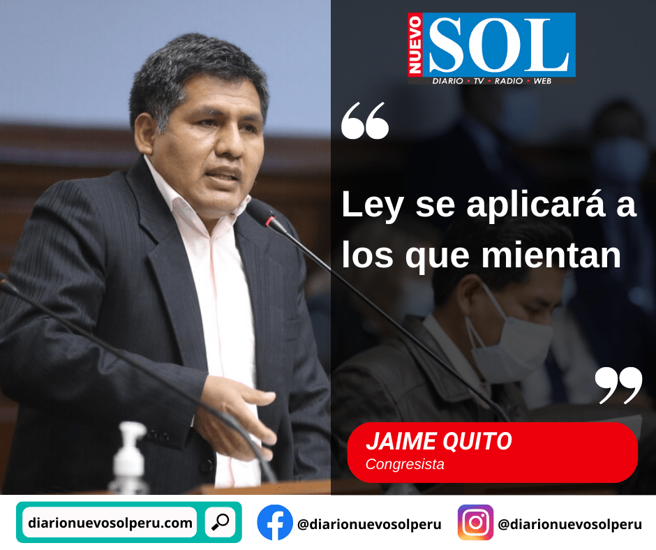 Jaime Quito, de la bancada de Perú Libre, afirmó que la norma aprobada contra los delitos de difamación no está dirigida a la prensa, a menos que esta “mienta”.