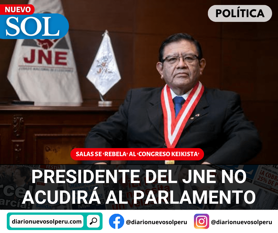 ¡Hasta que explotó! El presidente del Jurado Nacional de Elecciones (JNE), Jorge Salas Arenas, rechazó enérgicamente la ‘citación’ que le hizo la Comisión de Constitución del Congreso, encabezada por el ‘keikista’ Hernando Guerra García, para que informe sobre la inscripción del partido ‘Perú Primero’ del cuestionado Martín Vizcarra.