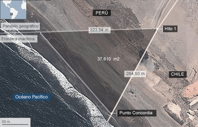 Recordó que la Corte en su fallo estableció ‘ficticiamente’ como punto de fin de la frontera marítima el Hito 1, “creando el triángulo terrestre, que Chile ha invadido y que intenta apropiarse, dejando a Tacna con una costa seca”, expresó.