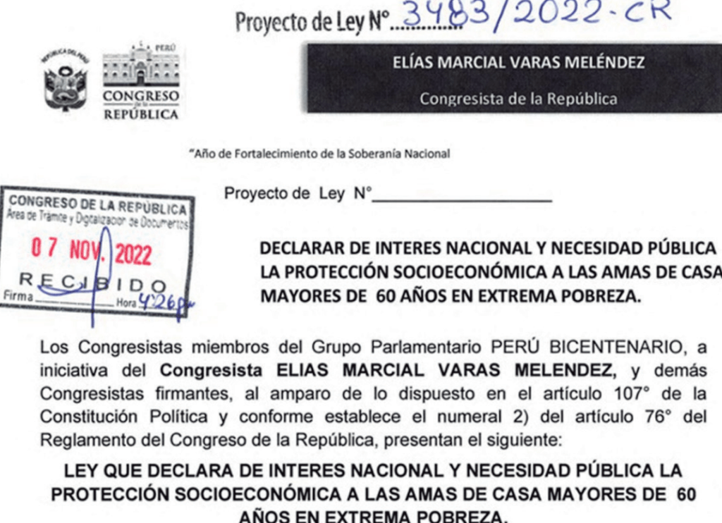 La Comisión de Inclusión Social y Personas con Discapacidad del Congreso tiene aprobado un dictamen que busca declarar de interés nacional la protección social de la mujer adulta mayor en situación de extrema pobreza.